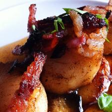 One of those marriages made in heaven bacon, scallops and whisky not forgetting the butter. this time though with the addition of black pudding. It has to be from Bury non of your over spiced pretenders form north of the border!